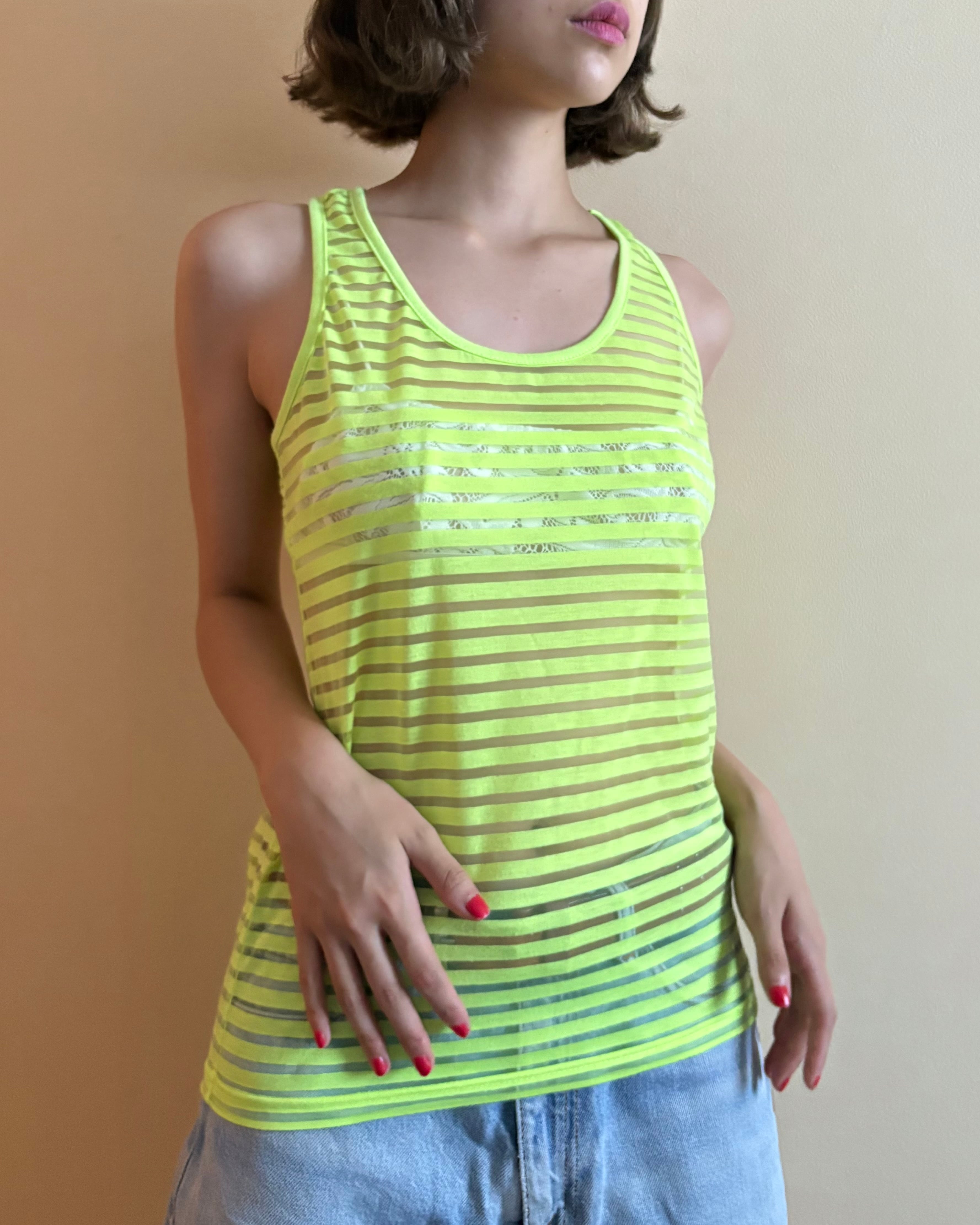 Sheer Tank Top / neon yellow