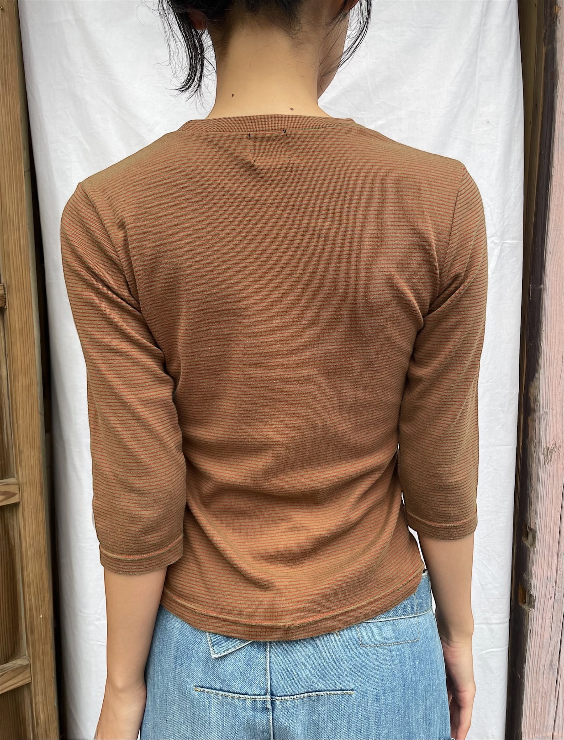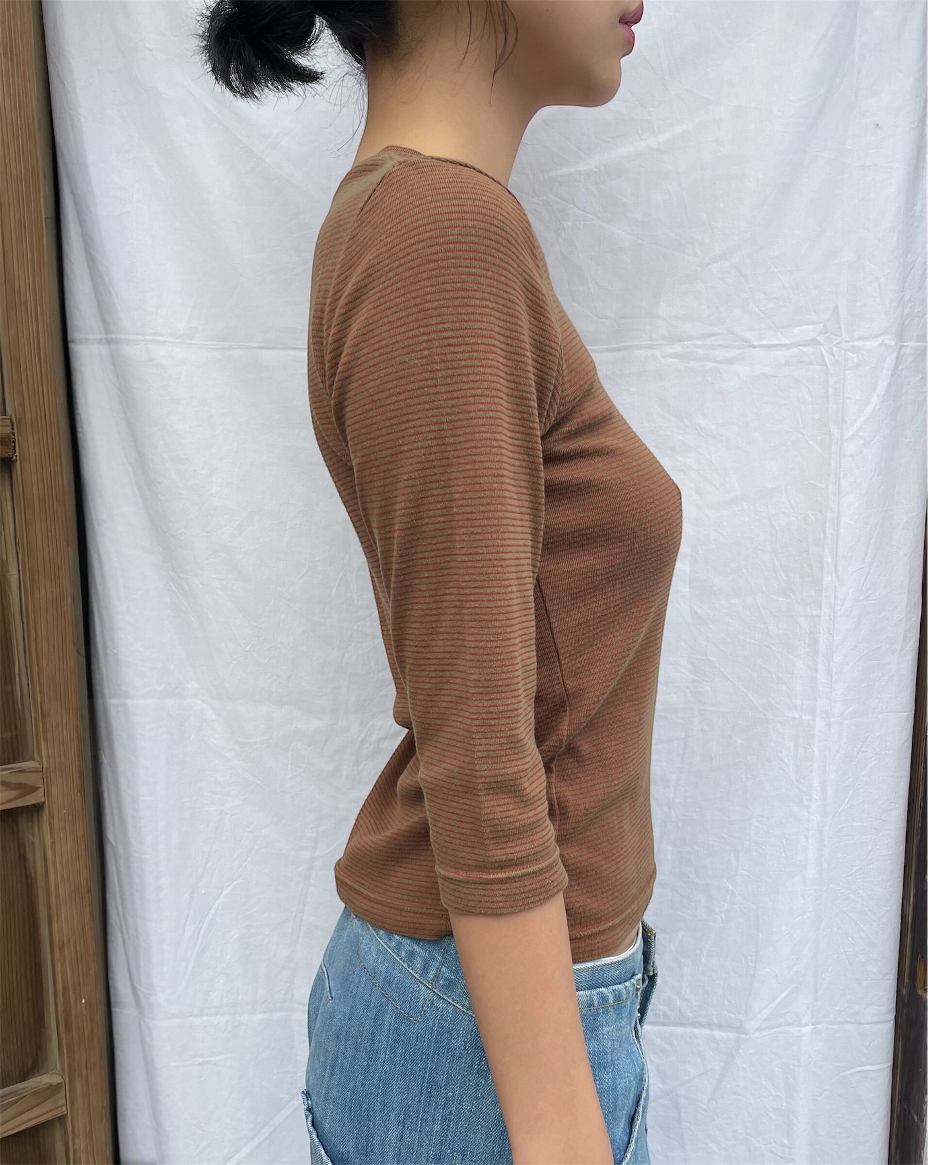 Hidden Pocket Stripe Top / red & brown