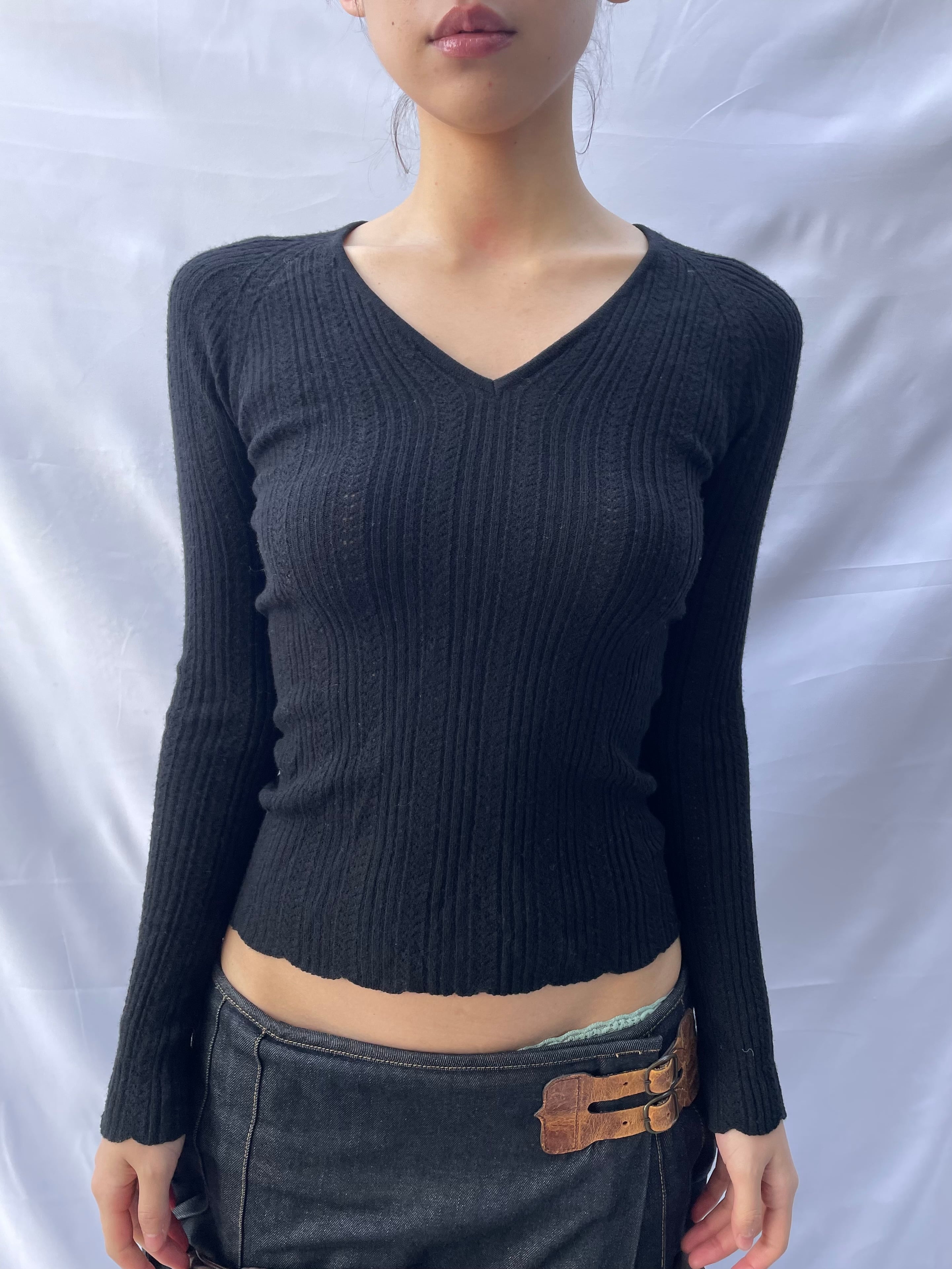 DOLCE&GABBANA ✳︎ Pointelle V-Neck Knit / black