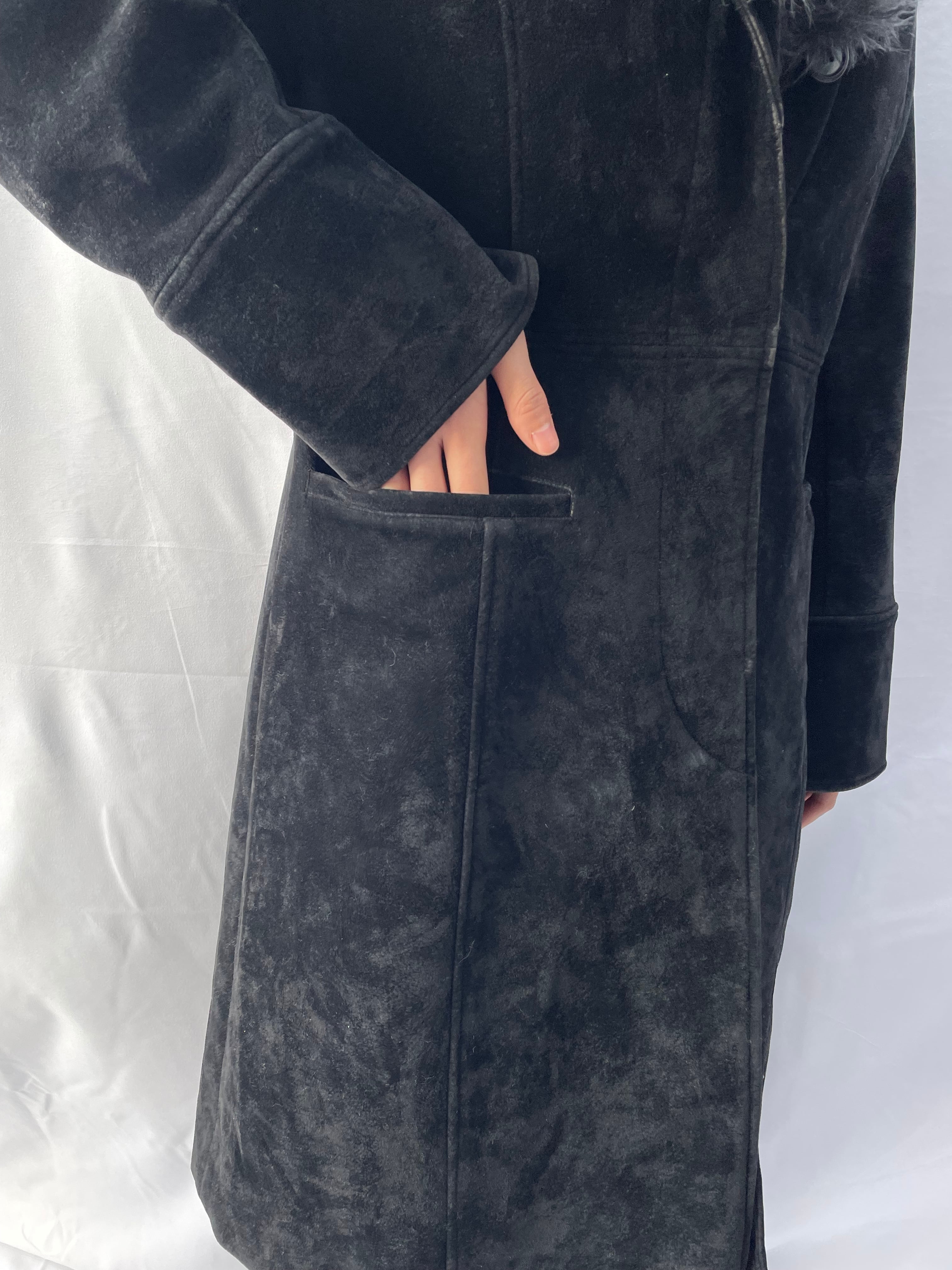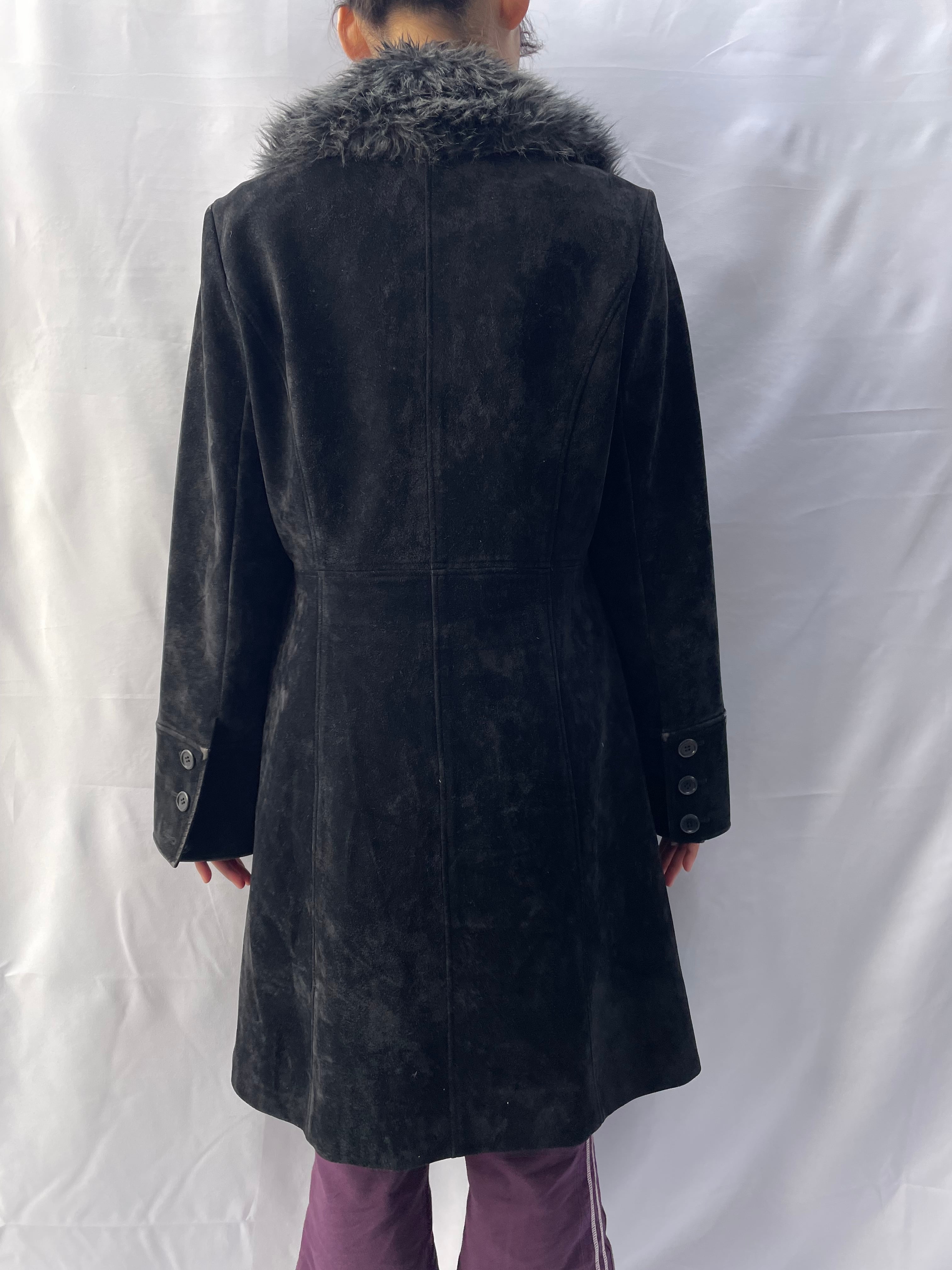 Fur Collar Long Coat / black