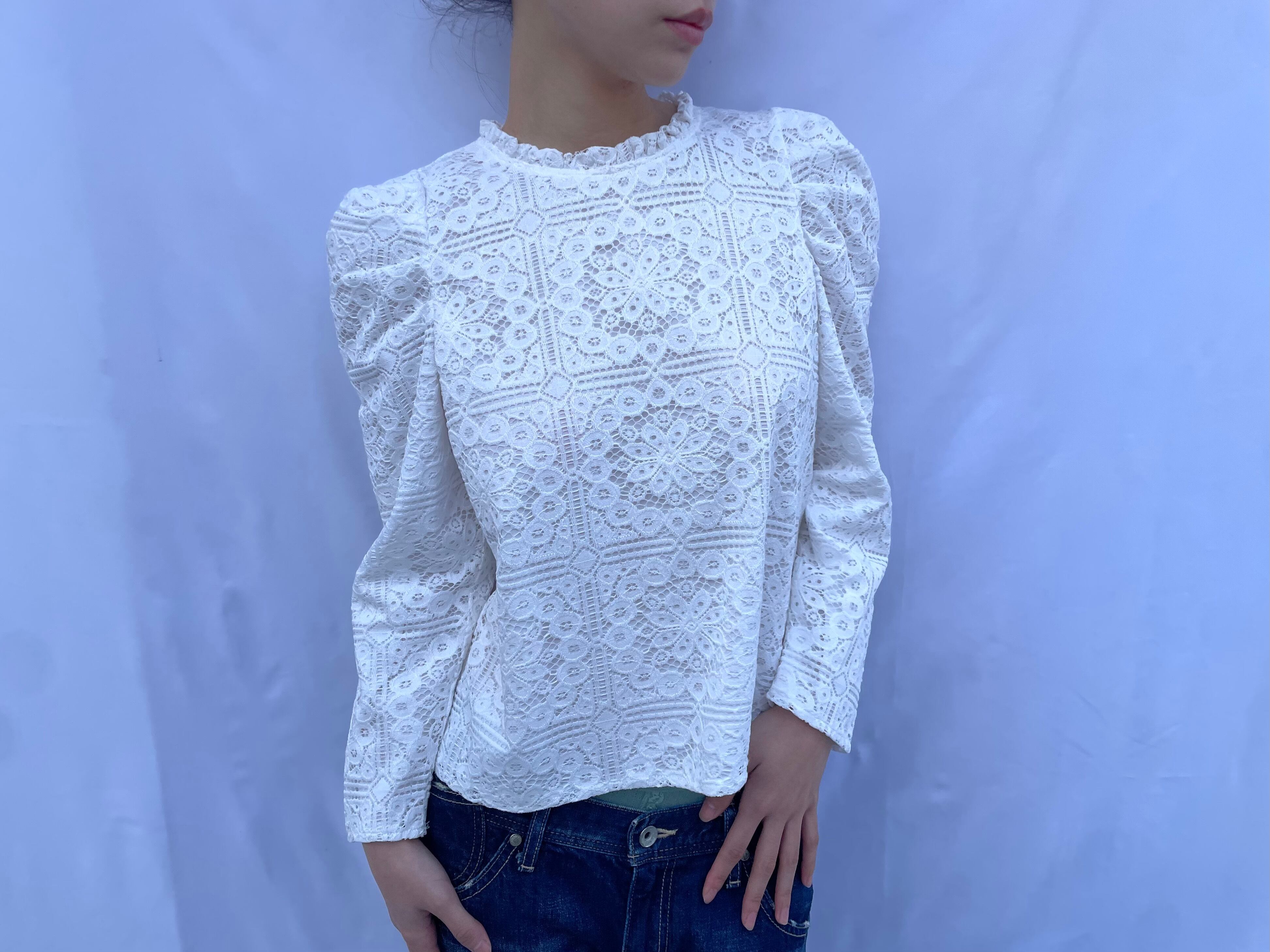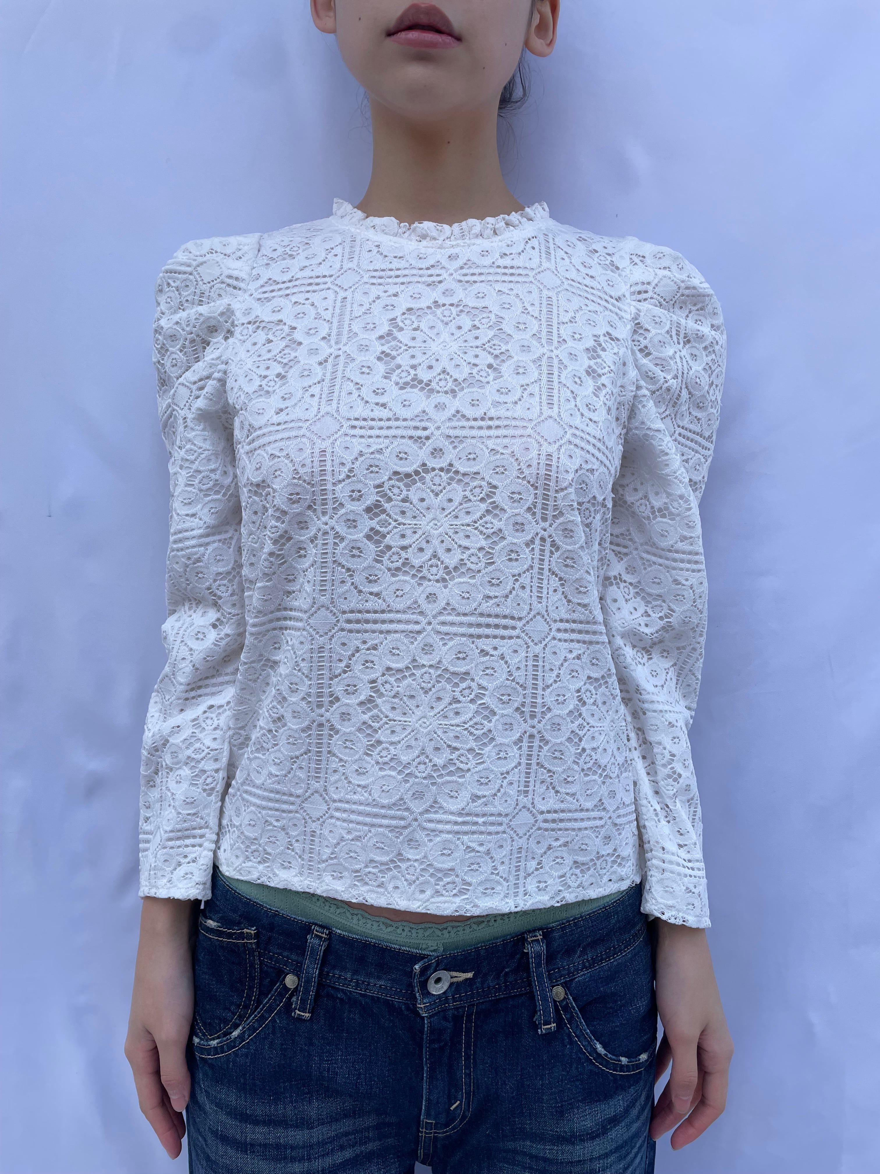 Puff Sleeve Lace Blouse / white