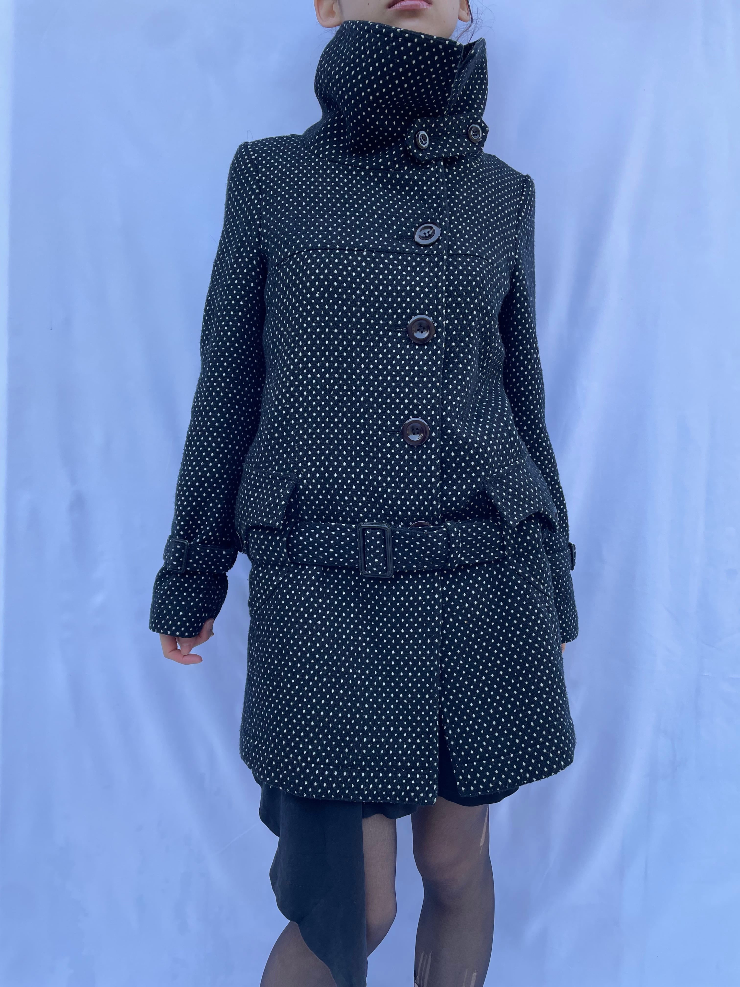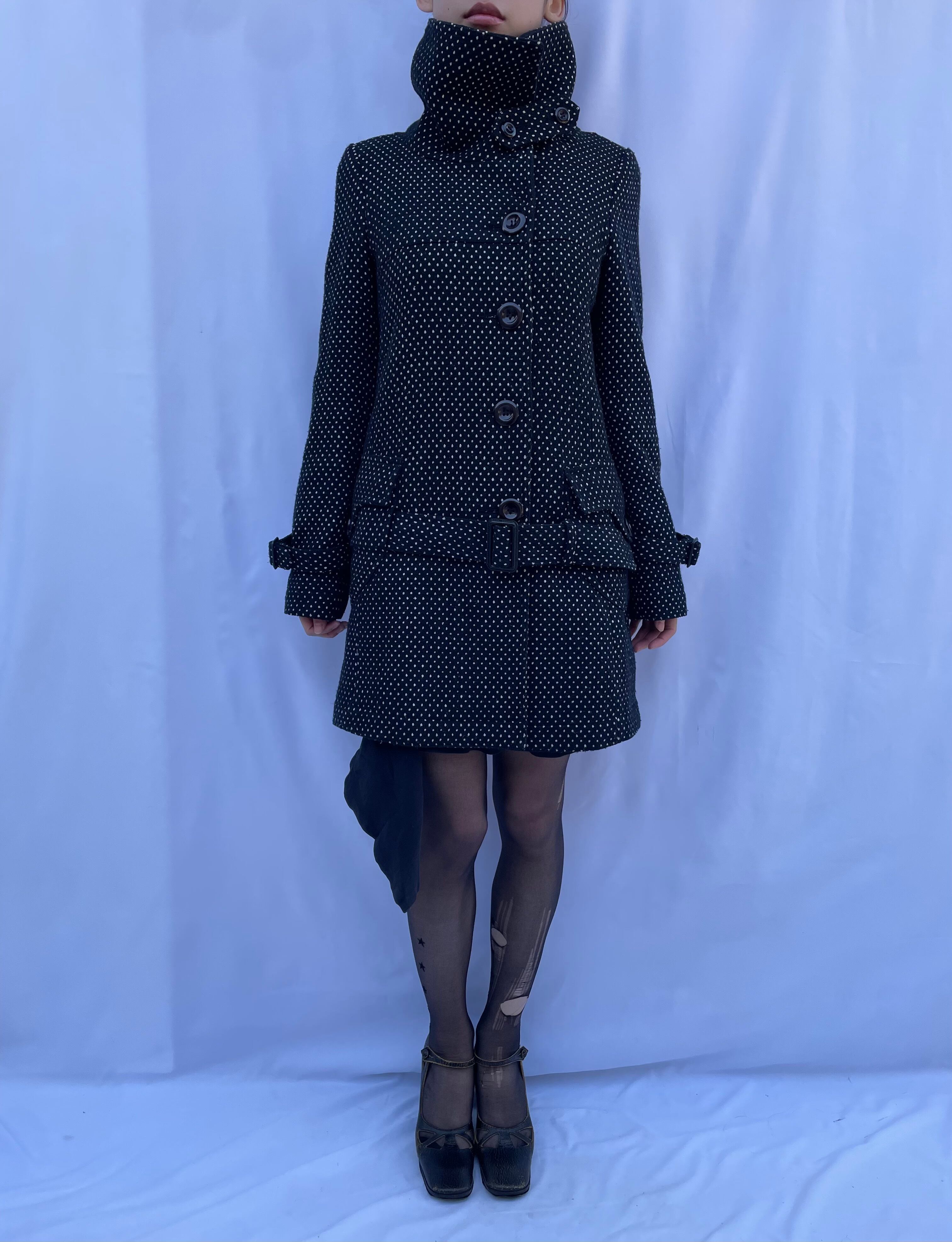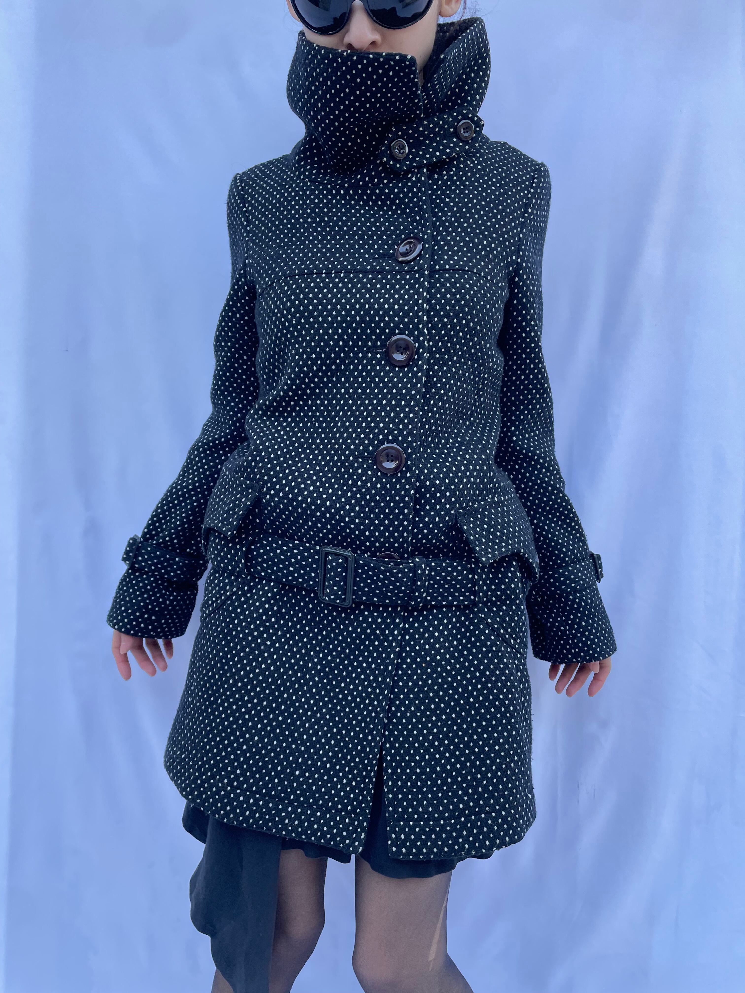 Dot Pattern Belted Peacoat