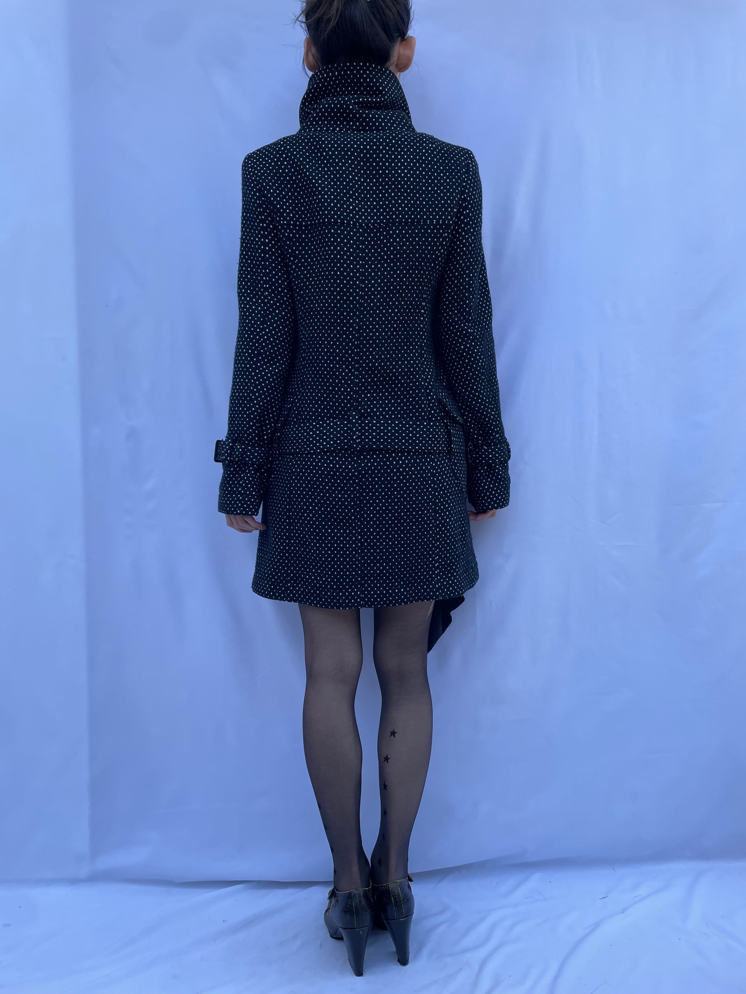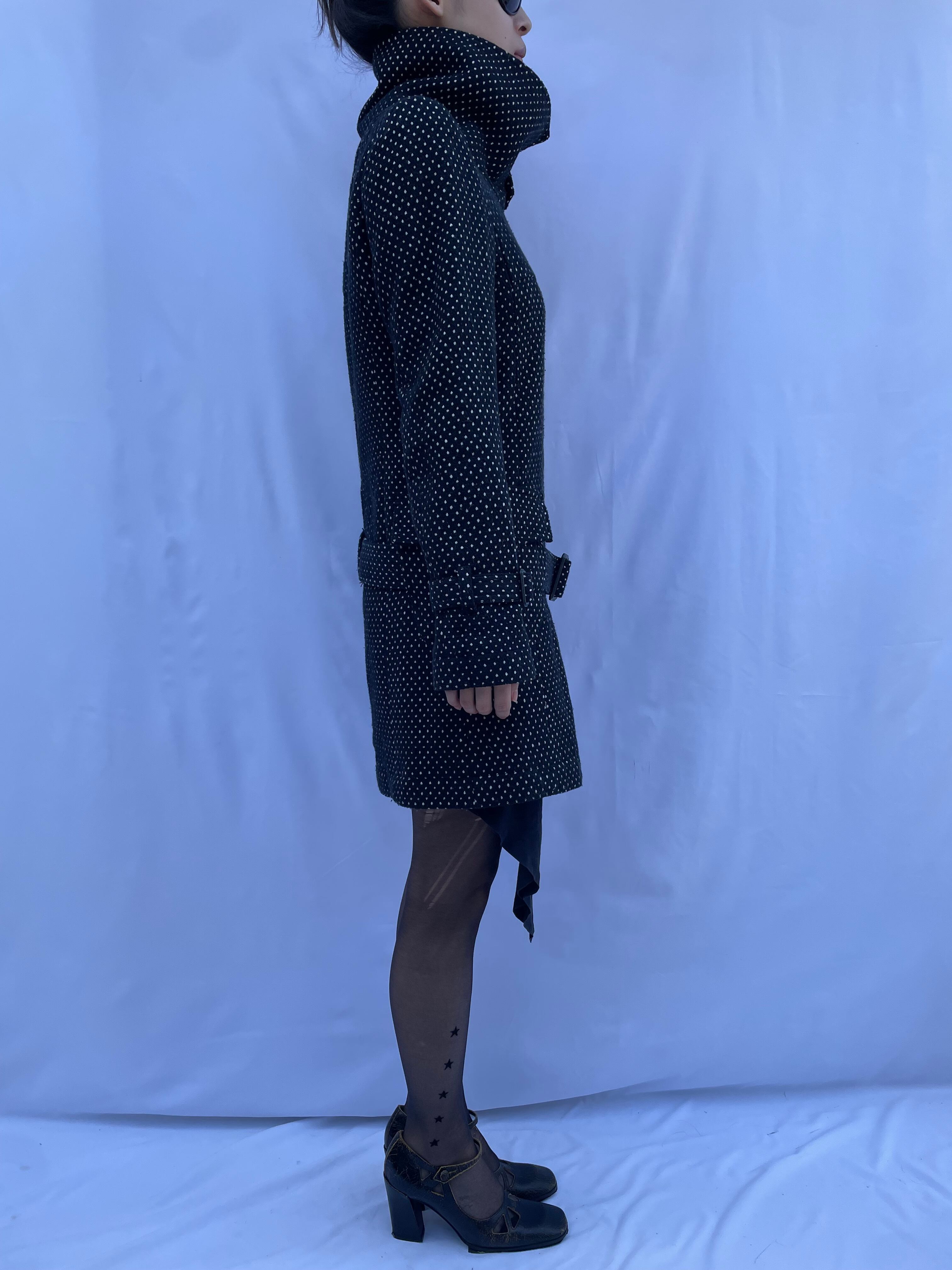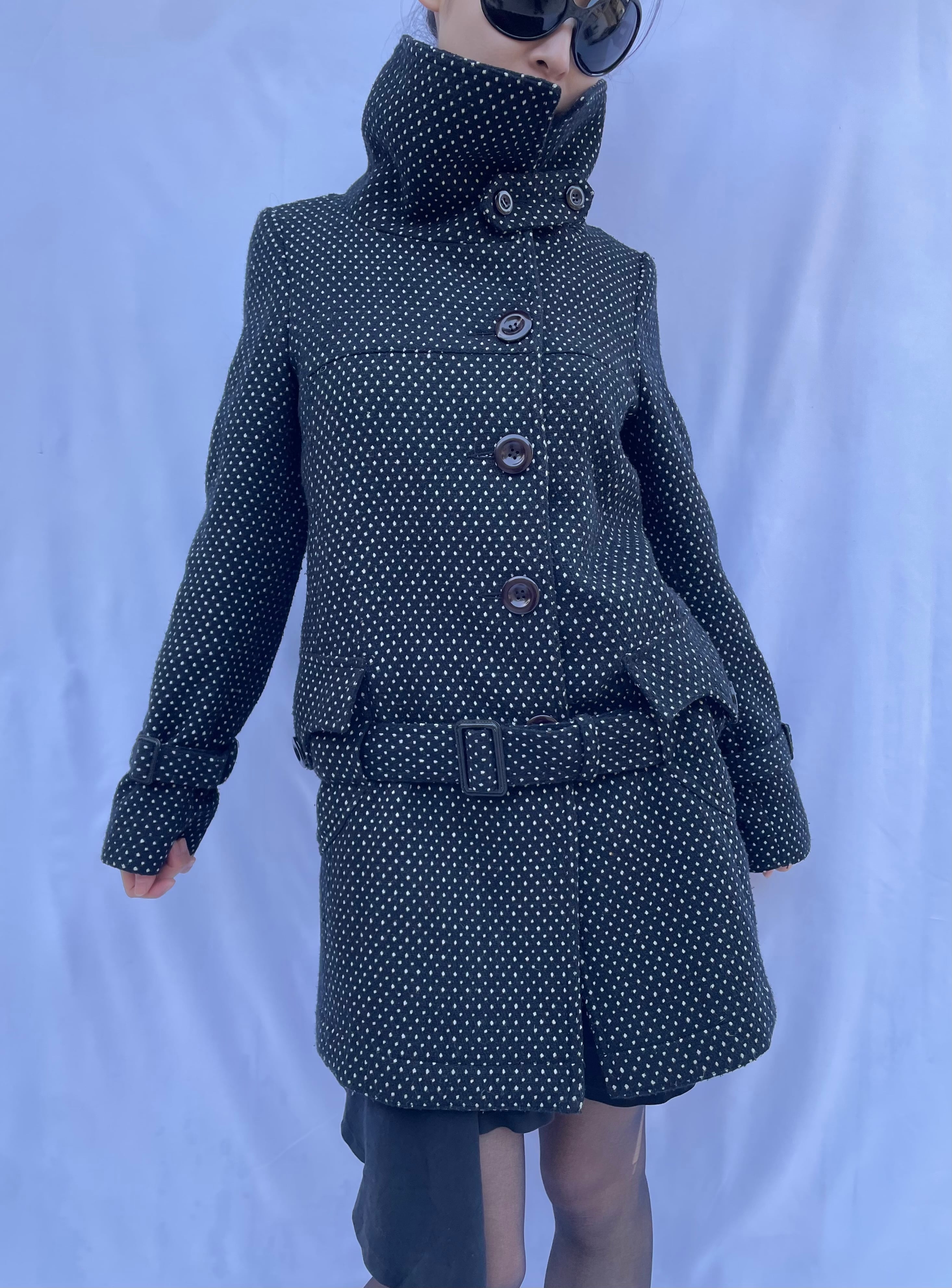 Dot Pattern Belted Peacoat