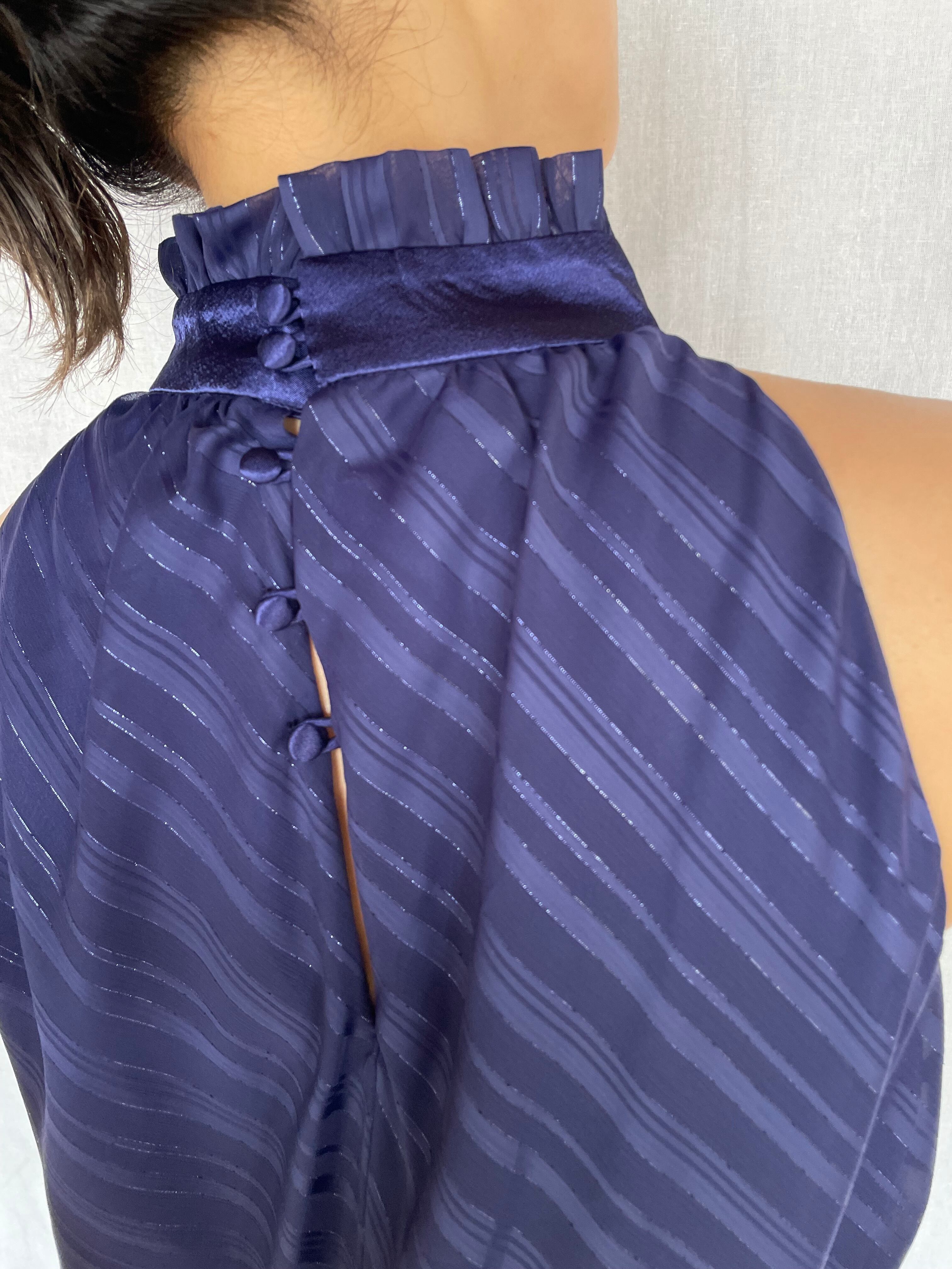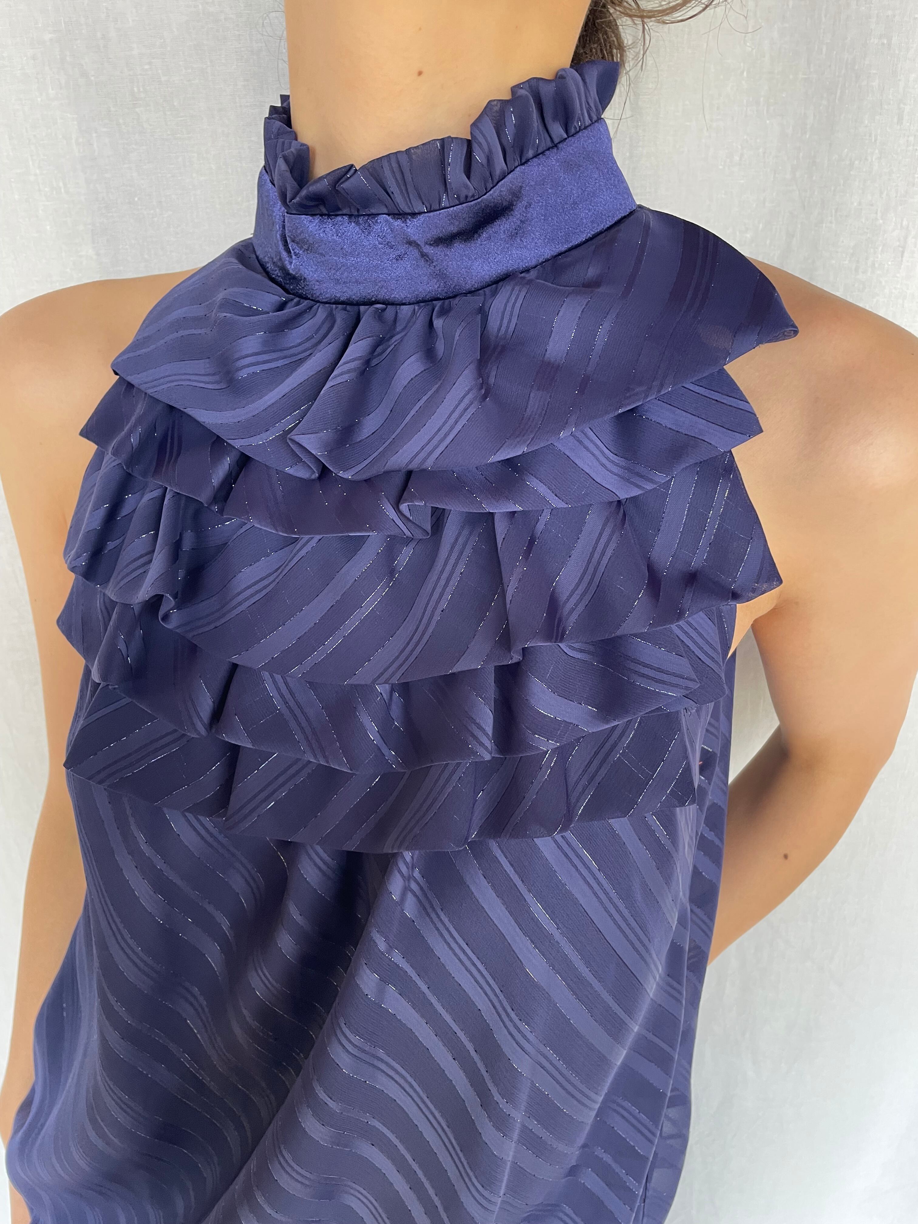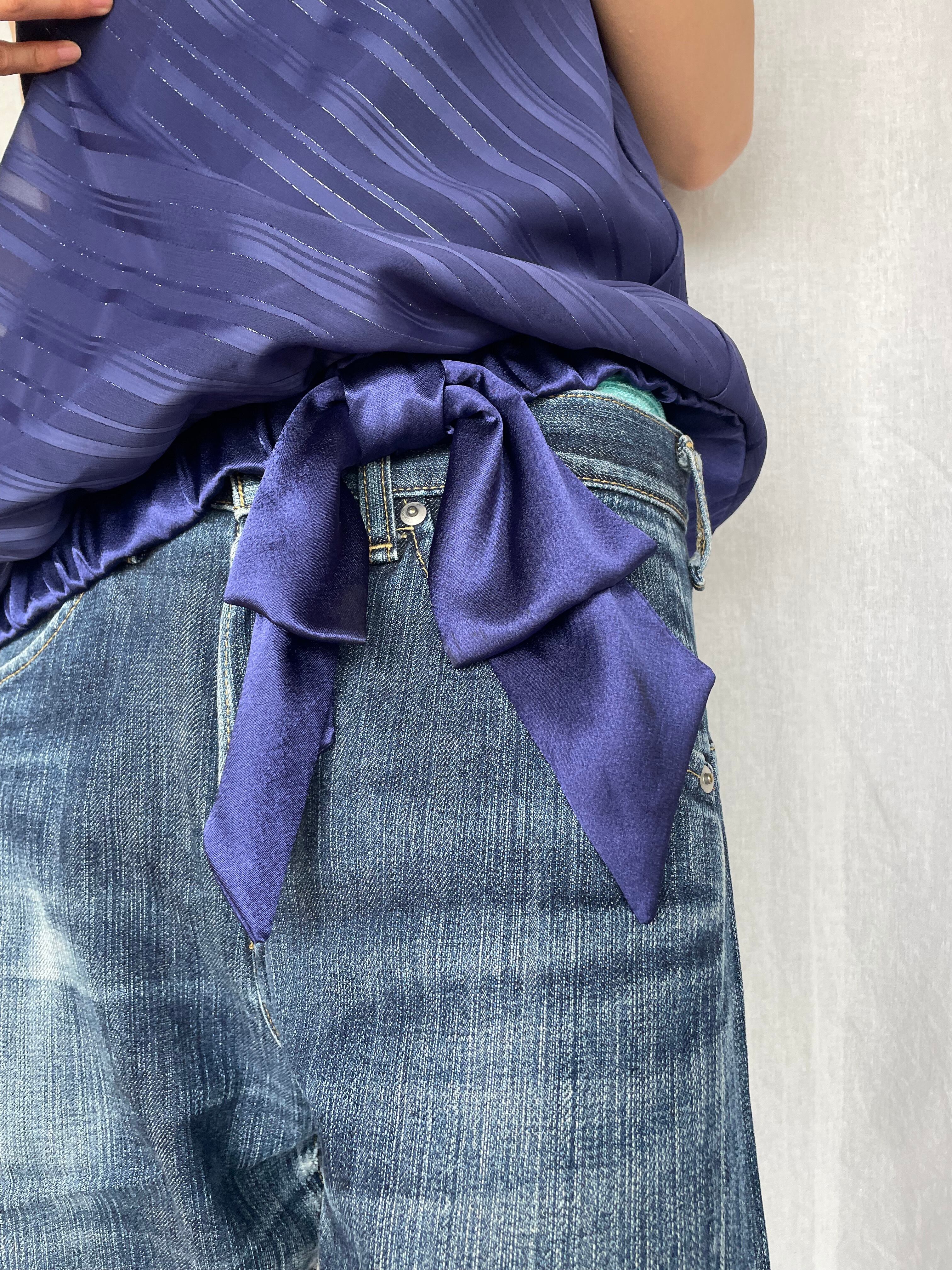 Ruffle Neck Ribbon Top / navy