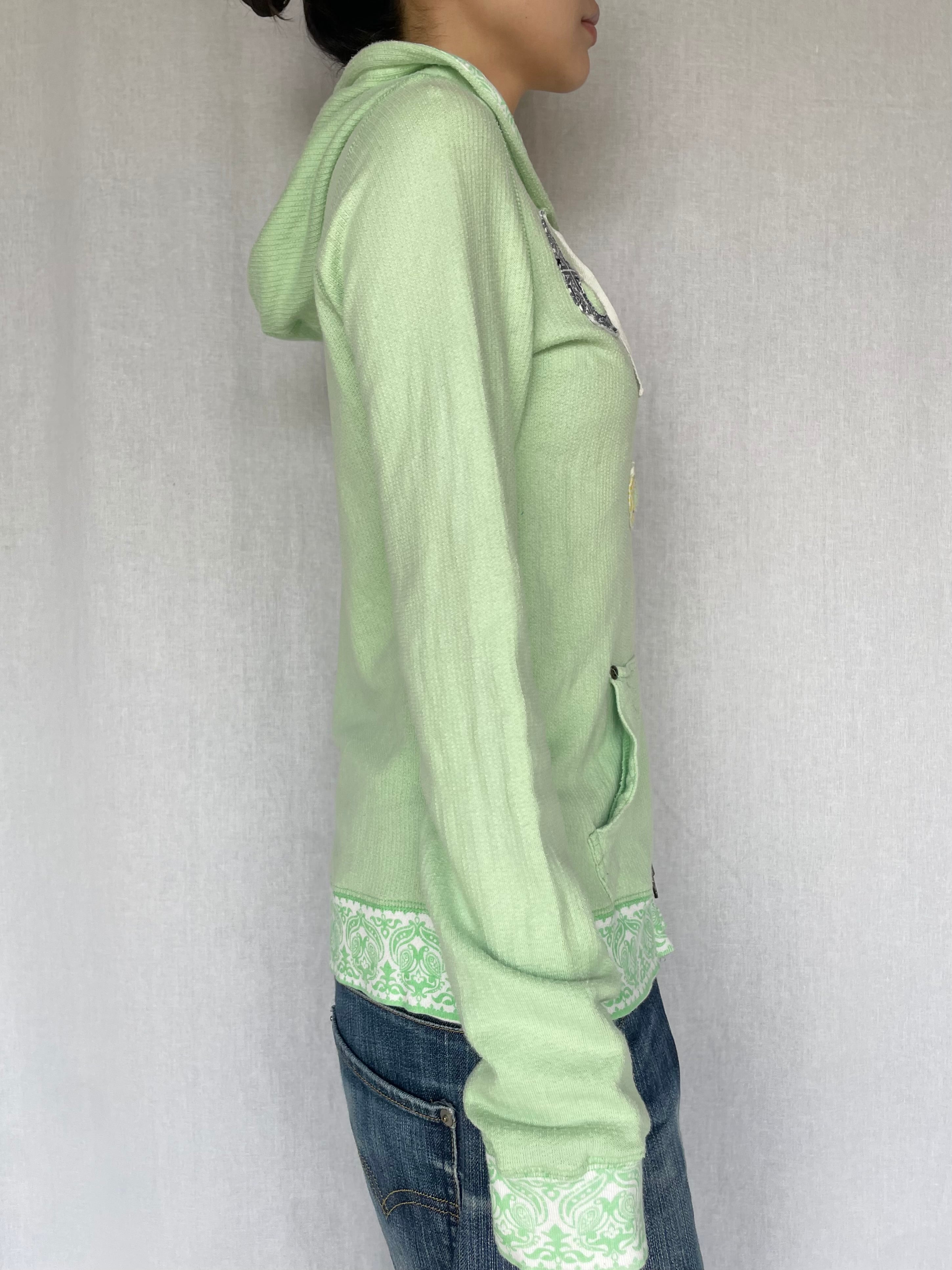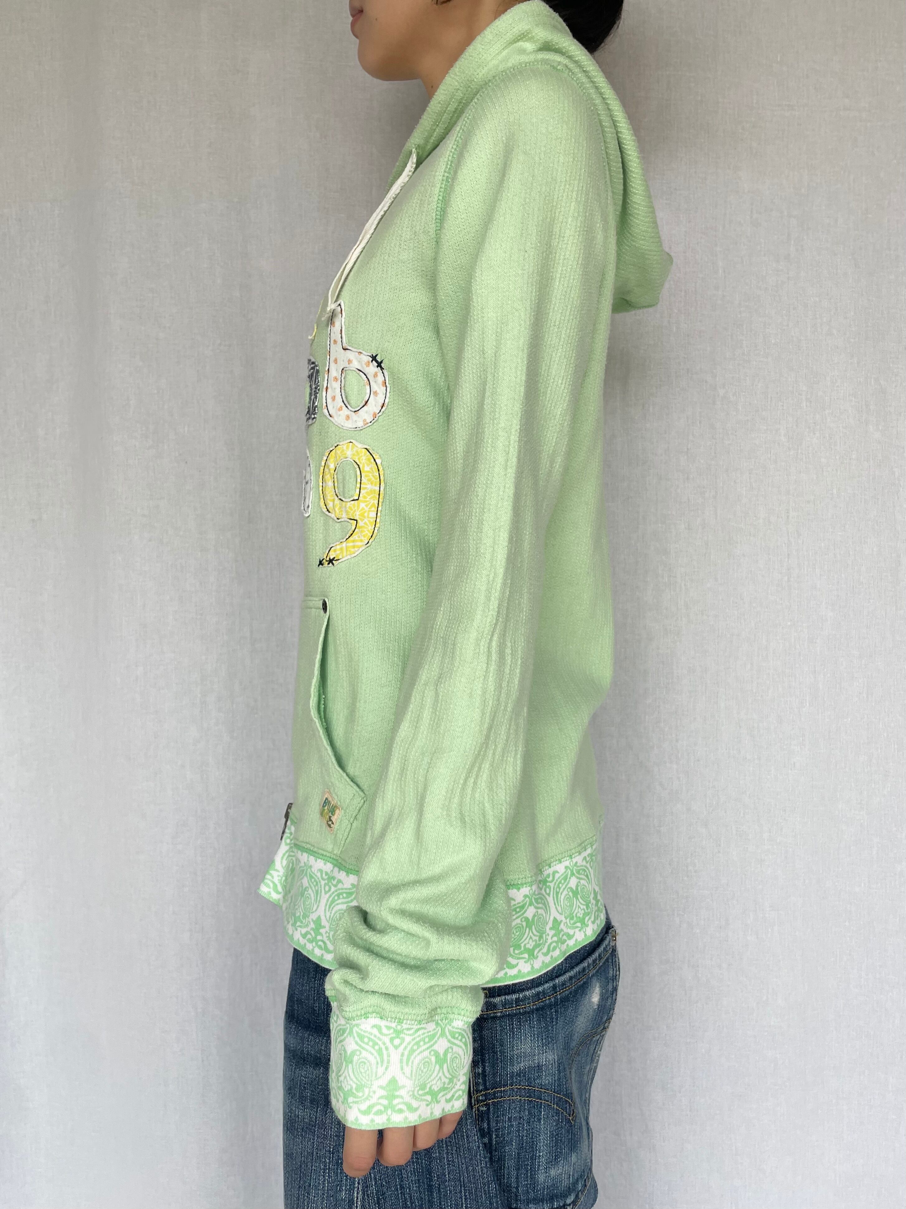 Patchwork Zip Hoodie / lime